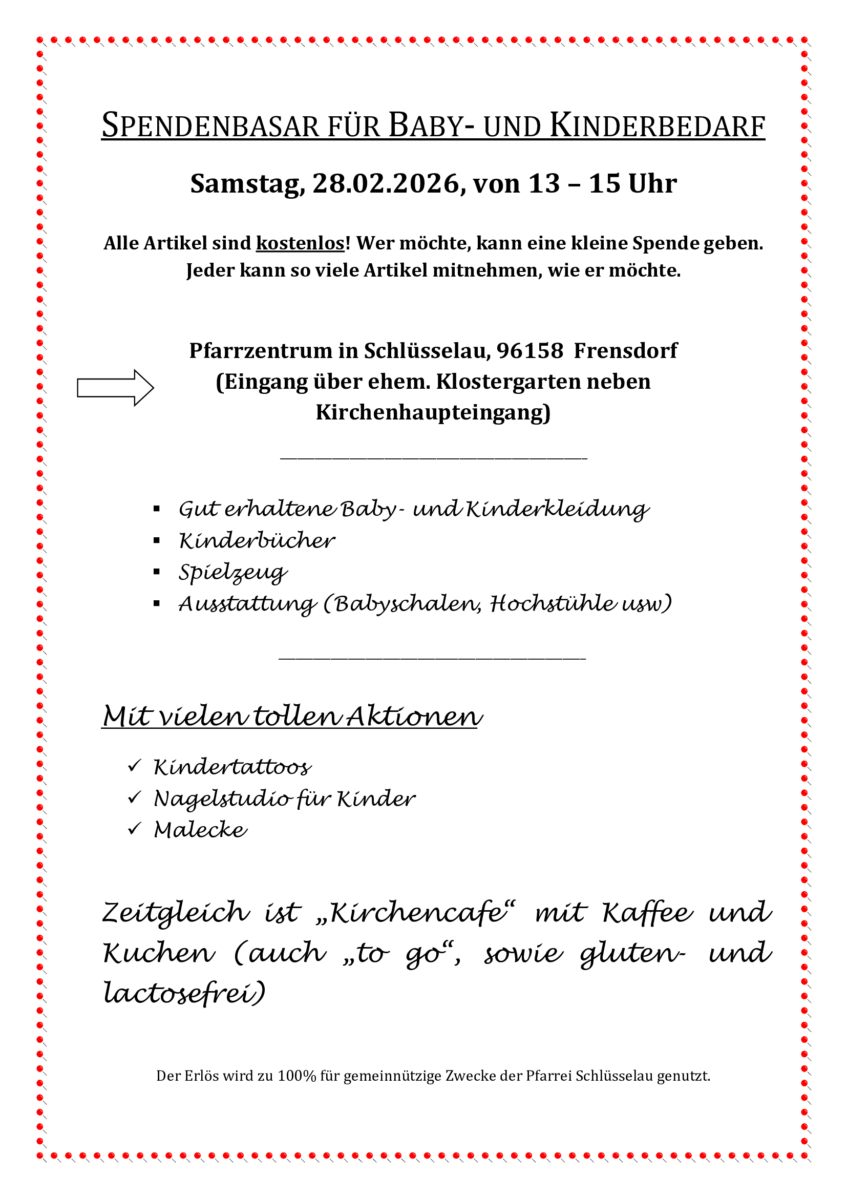 Schlüsselau: Spendenbasar für Baby- und Kinderbedarf