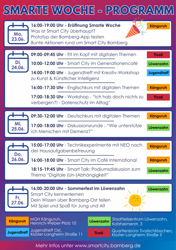 Details zum Programm, den Veranstaltungsterminen und kurzfristigen Änderungen finden Sie unter www.smartcity.bamberg.de