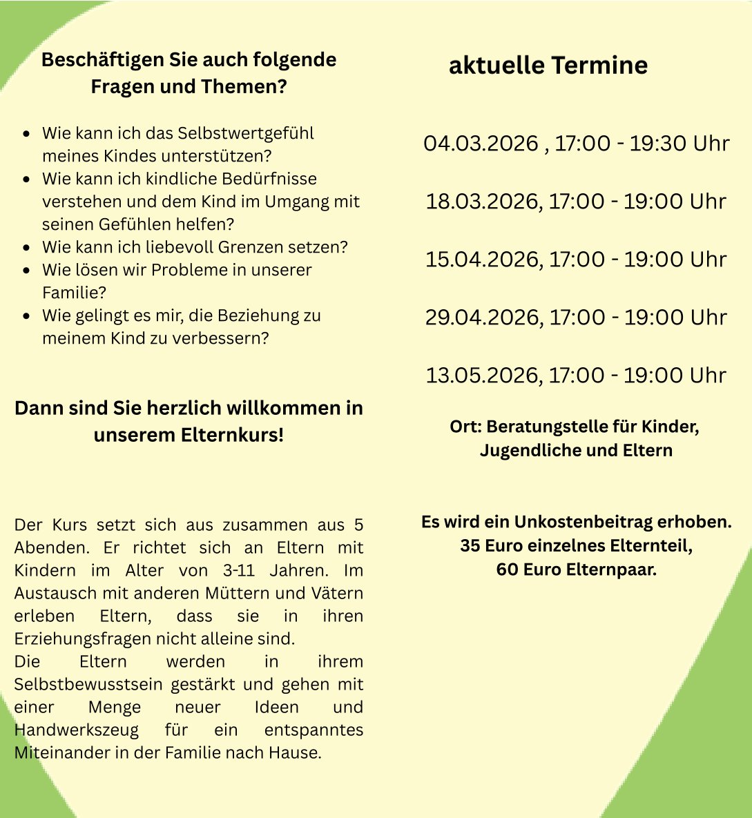 Dieser Kurs ist eine Kooperation von Kinderschutzbund und Caritas Beratungsstelle