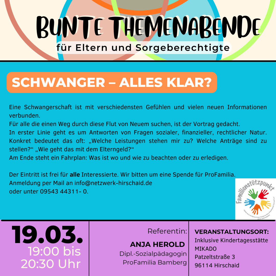 • Hirschaid: Bunter Themenabend „SCHWANGER – ALLES KLAR?“